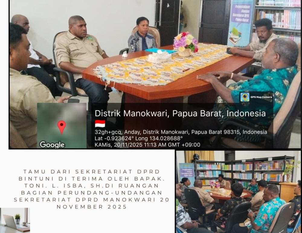 Kepala sub bagian Produk Hukum Daerah Bapak Toni Luter Isba, SH menerima kunjungan kerja dari sekretariat DPR Kab. Teluk Bintuni